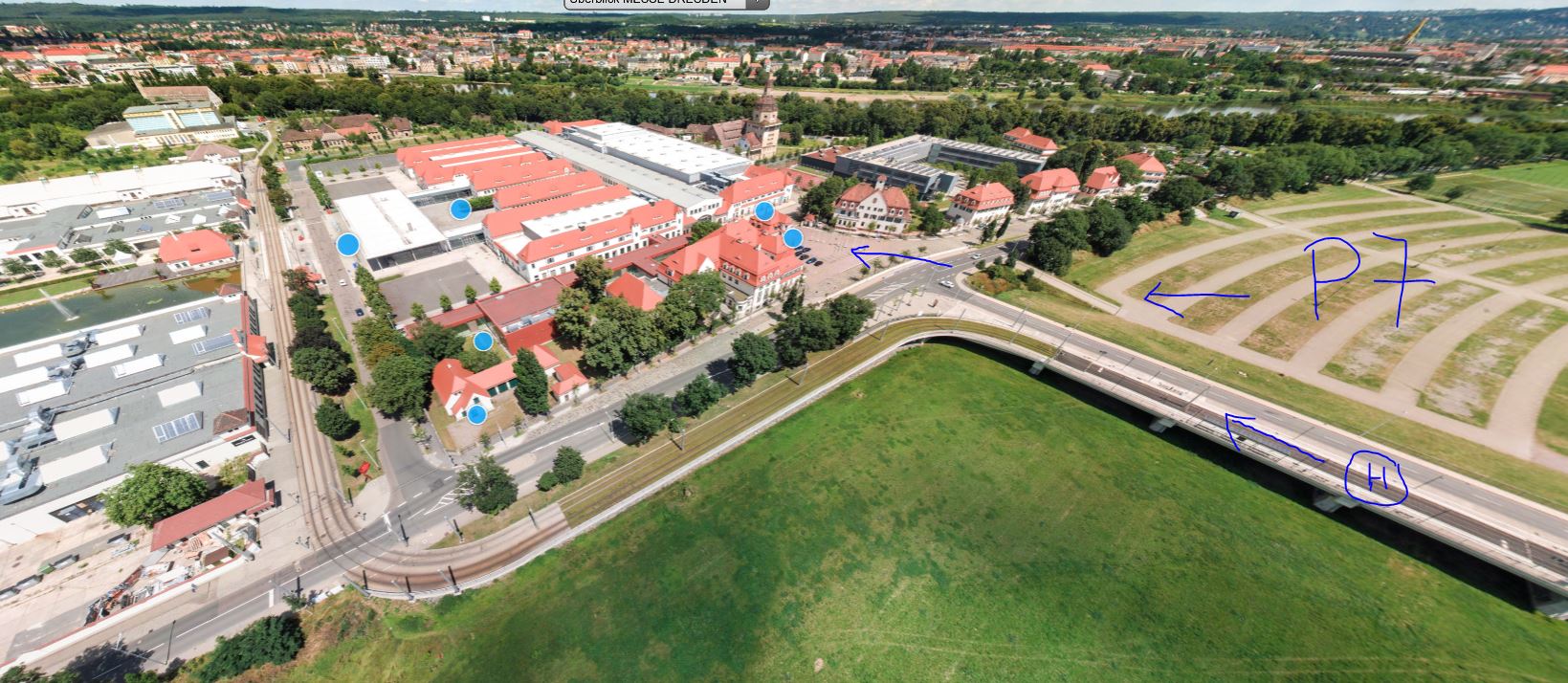 Ver- und Entsorgung gibt es für stolze € 25, aber mit herrlichem Ausblick auf das historische Dresden (Semperoper): Wiesentorstraße, 01067 Dresden (Details), etwa 4 KM zur Halle.